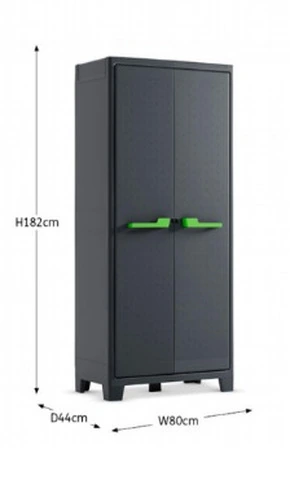 ARMADIO ALTO 4 RIPIANI REGOLABILI 80x44x182h MODELLO YBOMGli armadi da esterno sono utilissimi complementi di arredo da giardino realizzati per allestire lo spazio con ordine e praticità.I nostri armadietti sono realizzati in poliuretano , materiale scelto per resistere all'usura del tempo e alle intemperie. Grazie alla resistenza agli agenti atmosferici e ai raggi UV , l'armadio Ybom può essere posizionato ovunqeu tu voglia.E' dotato di 4 ripiani regolabili con portata massima di 30 kg.La chiusura lucchettabile , le cerniere in metallo e il fondo rinforzato forniscono tutta la sicurezza di cui si ha bisogno.Vengono fornite in dotazione due maniglie verdi e due maniglie grigie.Dimensioni Armadio : 80 x 44 x 182 h Dimensioni Imballo : 26x 85 x 46L'armadietto è disponibile nella colorazione unica Antracite
