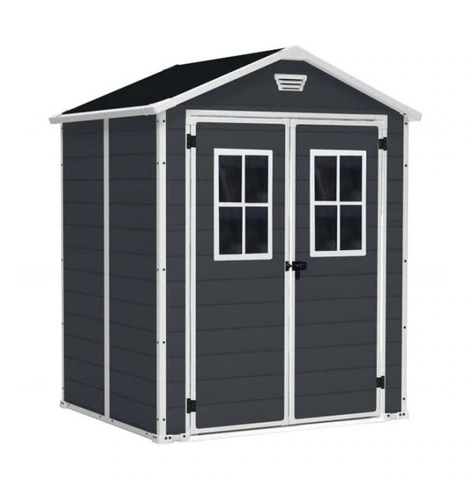 CASETTA RIPOSTIGLIO MAN CON FINESTRE IN RESINA 185x152x226H cmUna casetta da esterno è un complemento molto utile per qualsiasi giardino in quanto può essere adibita a numerose funzioni differenti.L'uso più immediato e diffuso è sicuramente quello di ripostiglio da esterno in cui sistemare materiali e attrezzi per il giardinaggio oppure oggetti ingombranti e d'uso stagionale.Questa linea di casette da giardino sono dotate di finitura effetto legno graffiato. Disponibili in due diverse colorazioni, sono dotate di una struttura con pareti a doppio strato, non richiedono praticamente alcuna manutenzione e sono resistenti ai raggi UV e alle intemperie.CASETTA IN RESINA 2 PORTE, 2 FINESTRE FRONTALI, PAVIMENTO INCLUSO - DIM.ESTERNE CM. 185x152x226hColorazioni disponibili : Grigio scuro / Beige                           Dimensioni imballo 200 cm x 113 cm x 20 cm