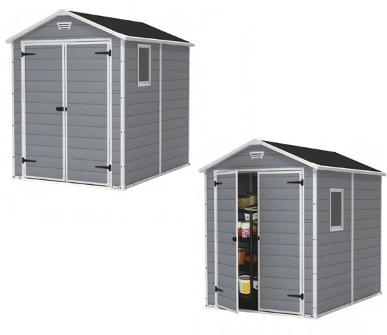 CASETTA RIPOSTIGLIO MAN IN RESINA 185,8x236,8x227H cmUna casetta da esterno è un complemento molto utile per qualsiasi giardino in quanto può essere adibita a numerose funzioni differenti.L'uso più immediato e diffuso è sicuramente quello di ripostiglio da esterno in cui sistemare materiali e attrezzi per il giardinaggio oppure oggetti ingombranti e d'uso stagionale.Questa linea di casette da giardino sono dotate di finitura effetto legno graffiato. Disponibili in due diverse colorazioni, sono dotate di una struttura con pareti a doppio strato, non richiedono praticamente alcuna manutenzione e sono resistenti ai raggi UV e alle intemperie.CASETTA IN RESINA 2 PORTE, PAVIMENTO INCLUSO, 1 FINESTRA LATERALE - DIM.ESTERNE CM. 185,8x236,8x227h - GRIGIOColorazioni disponibili : Grigio / Beige                           Dimensioni imballo 235 cm x 115 cm x 22 cm
