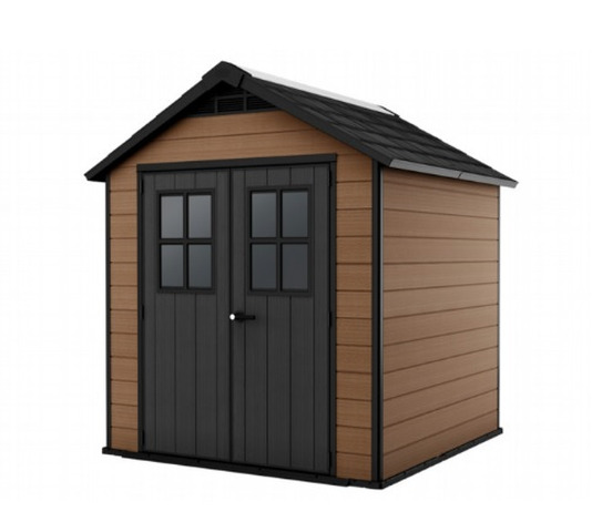 CASETTA RIPOSTIGLIO NEW IN RESINA 228x223,5x252H cmUna casetta da esterno è un complemento molto utile per qualsiasi giardino in quanto può essere adibita a numerose funzioni differenti.L'uso più immediato e diffuso è sicuramente quello di ripostiglio da esterno in cui sistemare materiali e attrezzi per il giardinaggio oppure oggetti ingombranti e d'uso stagionale.Realizzate in EVOTECH+™, particolare finitura che riproduce il legno naturale, alla vista e al tatto. Tetto rinforzato, resistenti a tutti gli eventi atmosferici. Pareti a doppio strato, con rinforzi interni. Zero manutenzione. 10 anni di garanzia.CASETTA IN EVOTECH+ (MATERIALE COMPOSITO RESINA-LEGNO), 2 PORTE, PAVIMENTO INCLUSO, LUCERNARIO E FI...