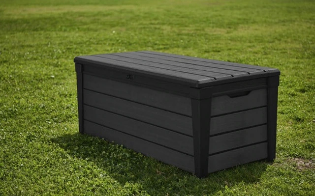 CODICE ARTICOLO: ITALFROM_11299 PORTATTREZZI BRUSH IN RESINA 145x69,7x60,3H cmLe casette porta attrezzi sono adatti da lasciare all’aperto, da utilizzare per custodire al riparo dalle intemperie strumenti, materiali e prodotti per il giardinaggio mantenendo in perfetto ordine il giardino.Realizzati in resina con finitura effetto legno. Struttura interna in geometria alveolare per una resistenza prolungata nel tempo.BAULE IN RESINA CON FINITURA EFFETTO LEGNO SPAZZOLATO, COPERCHIO CON PORTATA 300KG, PISTONI LATERALI PER APERTURA FACILITATA, LUCCHETTABILE - CM. 145x69,7x60,3h - 454 LT - GRAFITEDimensioni imballo 147 cm x 73,50 cm x 15 cm