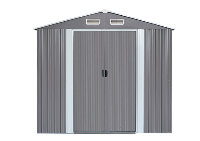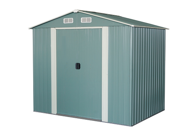 ITALFROM Casetta/Box Giardino in lamiera Casetta da giardino prefabbricata senza pavimento - misura esterna cm 174 X 236 X 201 H - Apertura:due porte scorrevoli su guide - Materiale: acciaio zincato preverniciato e trattamento antirugine - Colori a scelta (nel menù a tendina) : verde chiaro, grigio chiaro, bianca- Trattamento anti UV- Telaio interno in acciaio zincato spessore 0,6 mm - Spessore lamiere: 0,25 mm.- La misura delle casette è riferita all'ingombro totale del tetto che ha una leggera sporgenza rispetto alle pareti. L'ingombro della base è di circa 10/12 cm in meno.Larghezza porta 105 cm : 2 ante su guida scorrevole Altezza porta 170 cmMisure : La merce arriverà completamente imballata. Montaggio e smontaggio rapidi con istruzioni