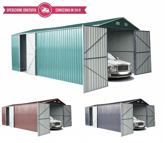 Casetta/Box Giardino in Lamiera Vari Colori 500x299x232h MARRONE NON DISPONIBILESCEGLI IL COLORE DAL MENÙ Misure: 500x299x232h *sotto le misure in dettaglio Box da giardino prefabbricato Apertura:due ante a battenti + porta laterale Materiale: acciaio zincato preverniciato e trattamento antirugine Telaio interno: acciaio zincato 0,60 mm / 1,0 mm Colore trattamento anti UV a scelta tra: Verde, Marrone RAL 3009 o Antracite Ral 7016 Spessore lamiere: 0,25 mm Particolare Porta N.B. Fare attenzione per il corretto montaggio della porta DIMENSIONILa merce arriverà completamente imballata. Montaggio e smontaggio rapidi con istruzioni