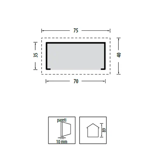 CARATTERISTICHE :  Spessore della parete 10 mm                       Misure 70x35 cm  Misure 70x40 cm                                         Dimensioni collo 150X80X5 cm           Peso  30 Kg SICUREZZA: Si raccomanda di eseguire il montaggio adottando sempre i dispositivi di protezione individuali; scarpe, guanti, occhiali protettivi e utilizzare con prudenza gli elettroutensili, scale e tutti gli attrezzi da lavoro necessari. Particolare attenzione è da prestare ai bambini che vanno tenuti lontani dalla zona di lavoro, fino a montaggio completato. MANUTENZIONE: Per proteggere e prolungare la vita dell'armadio in legno è necessaria una corretta manutenzione. Tutte gli armadi in legno sono forniti grezzi, è necessario proteggerle e decorarle con l’uso di prodotti specifici, come impregnanti e antitarlo. Si raccomanda di effettuare un trattamento con impregnante cerato per esterni, scegliendo la tonalità desiderata. Il trattamento andrà ripetuto ogni qualvolta il colore perda di tonalità o brillantezza a seconda dell’esposizione del legno alle intemperie cercando di utilizzare sempre una stessa colorazione . Controllare periodicamente la stabilità dell'armadio, il serraggio delle viti e il corretto funzionamento della porta. PRECAUZIONI: Chiudere sempre la porta dopo il suo utilizzo. Non inserire mai oggetti incandescenti come barbecue ancora caldi o con braci accese.