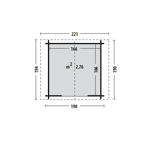 CARATTERISTICHE : Spessore della parete 28 mm      Misure pareti 190 x 190 cm  Misure interne 166 x 166 cm       Altezza muro 192 cm   Altezza totale 219 cm                   Area 2,76 m²                         Misure porta singola 84,5x176,5 cm colli: 230x120x50 cm                      ...