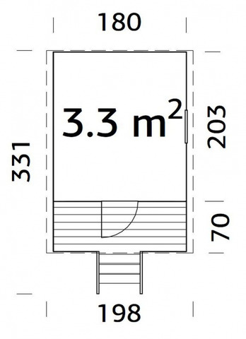 CODICE ARTICOLO: ITALFROM_8273 CARATTERISTICHE : spessore della parete 16mm         misure pareti 180x203 (271)cm         Altezza133 cm                              Altezza totale 225 cm               Sporgenza 70cm                           Area 3,3 m²                                  Volume 5,2 m³                              Spessore Listoni Tetto e Pavimento 16 cm Area Tetto  5,6 m²                         Misure Porta 51x124 cm               Misure Finestra Fissa 37x43 cm            colli: 3,3...