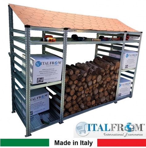 Legnaia Modulare con Staffe a Parete ITALFROM® con 7 Ripiani Portaoggetti in Acciaio Zincato ( Tutti i ripiani possono essere regolati in altezza con semplicità e praticità secondo le singole esigenze) Di seguito potete visionare il video montaggio della legnaia: Scegli le misure dal menù a Tendina sopra La Legnaia Modulare con Staffe a Parete ITALFROM® in acciaio zincato è una produzione e progettazione 100% Italfrom® - Made in Italy. Questa struttura aperta atta a proteggere la vostra legna da ardere dalle intemperie. Grazie anche alla sua  modularità, riusciamo a garantire una molteplicità di misure standard a scelta, come indicato dal menu a ...