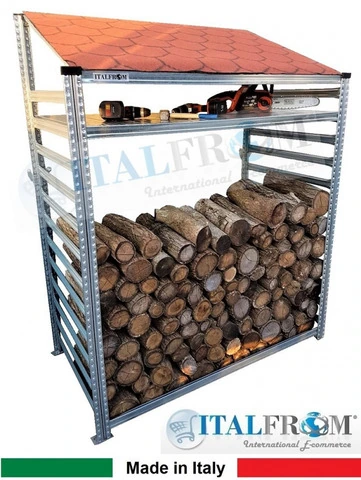 Legnaia Modulare ITALFROM® in Acciaio Zincato con Staffe a Parete - con Ripiano - Modulo Iniziale -