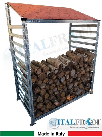 Legnaia Modulo Iniziale senza Schienale con Staffe di Fissaggio a Parete in Acciaio Zincato ITALFROM® Di seguito potete visionare il video montaggio della legnaia: Scegli le misure dal menù a Tendina sopra La Legnaia Modulare con Staffe a Parete ITALFROM® in acciaio zincato è una produzione e progettazione 100% Italfrom® - Made in Italy. Questa struttura aperta atta a proteggere la vostra legna da ardere dalle intemperie. Grazie anche alla sua  modularità, riusciamo a garantire una molteplicità di misure standard a scelta, come indicato dal menu a tendina sopra e che di seguito vi riportiamo :Altezze Disponibili:  (H 200 cm Parte alta /  H170 cm parte Bassa )   ( H250 cm parte alta / 220 cm parte Bassa ) Larghezza Disponibili :  (98 cm / netta 90cm)  (128 cm /netta120 cm)  (158 cm / netta 150 cm) Profondità Disponibili :  ( 60 cm) ( 80 cm) Pendenza: (27°- 37,5% per profondità da 60 cm) (21° - 50% per profondità da 80 cm)Le nostre legnaie in base alla misura scelte sono Composte dai seguenti elementi principali: Due robuste pareti laterali composte da appositi distanziali per il contenimento legna (N°12 per legnaie h200 /  N°16 per legnaie h250) previste a una distanza l' una dall altra di circa 8 cm , tali pareti sono rifinite nella parte superiore da appositi cappellotti in pvc nero, mentre nella parte inferiore da apposite basi metalliche che prevedono eventualmente la possibilità di ancorare a terra la struttura con appositi tasselli. Due staffe per fissaggio a muro con tasselli. Un tetto in acciaio zincato a caldo  con profili rinforzati, ricoperto da una comoda guaina bituminosa impermeabilizzante autoadesiva per una maggiore protezione dalle intemperie. Un profilo di giunzione zincato rinforzato ad incastro  nella parte anteriore in modo da garantire la tenuta dell' intera struttura, ed inoltre la solidità nel caso anche di un eventuale caduta di legna su di esso. N.B. Inoltre a Richiesta Uno o più ripiani regolabili in altezza con portata di circa 130 kg per riporre i vari accessori e utensilerie. VANTAGGI E UNICITA'  DELLE LEGNAIE ITALFROM:  1) Praticità e velocità nel montaggio e smontaggio; dato il sistema di montaggio interamente ad incastro, si può tranquillamente montare in inverno e smontare in estate non occupando lo spazio del vostro giardino in maniera permanente come gran parte delle legnaie sul mercato. Inoltre una volta smontato il prodotto occupa pochissimo spazio e può essere riposto in qualsiasi angolo della casa o del giardino.2) Versatilità di Montaggio  grazie la natura componibile delle nostre legnaie, è possibile in fase di montaggio , scegliere  la pendenza del tetto a vostro piacimento quindi farlo pendere o dalla parte frontale oppure dalla parte della parate , tale disposizione di montaggio naturalmente potrà essere modificata con praticità secondo le singole esigenze anche nel tempo3) Le legnaie ITALFROM®  sono componibili e modulari, si possono aggiungere moduli di varie misure secondo le singole esigenze e anche ripiani per utensili e attrezzi.4) Le legnaie ITALFROM® hanno una scelta di moduli e misure standard vastissima secondo le singole esigenze ottimizzando al massimo gli spazi per la vostra legna.5) Le legnaie ITALFROM® sono in acciaio zincato e non subiranno nessun mutamento nel tempo, facendo risparmiare tempo e denaro per la manutenzione come le classiche legnaie in legno.6) L' estetica e il design delle legnaie ITALFROM® è unica ed inconfondibile, apprezzata e ricercata in Italia ed in Europa.7) Vastissime disponibilità a magazzino, questo comporta Per voi Clienti: 1 Consegne immediate e  2 Prezzi Super vantaggiosi.      Immagini a scopo Illustrativo - esempi di composizioni alternative