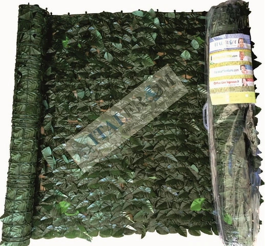 Siepe artificiale ornamentale -Retro con anima in plastica rigida -  ideale per usi esterni ed interni. Con sistema anticaduta foglie cucite singolarmente-Tiene lontano occhi indiscreti e non attira insetti. E' trattata per resistere ai raggi UV e conserva, il suo colore originale resistendo a qualsiasi intemperie.Fornita standard nella misura MT 3x1h / 3x1,5h ma modellabile a blocchi da cm 25(H)x50(L) , grazie al suo sistema a clip ;  di seguito la foto della parte retro.