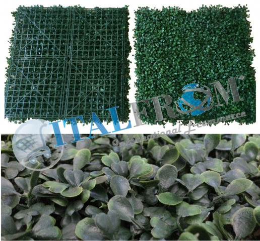 CODICE ARTICOLO: ITALFROM_4987 Siepe artificiale ornamentale -Retro con anima in plastica rigida - ideale per usi esterni ed interni. -Tiene lontano occhi indiscreti e non attira insetti. Utile per la privacy del vostri giardini, balconi, gazebi, ringhiere, molto utilizzata anche per addobbi di vetrine garantendo un buon riultato visivo e unifome. E' trattata per resistere ai raggi UV e conserva, il suo colore originale resistendo a qualsiasi intemperie.Non richiede manutenzione.Foglie fissate saldamente allo scheletro in plastira rigida retrostante, fissaggio sempliece e veloce con le altre piastrelle a mezzo appositi ganci.La Piastrella 50x50cm è suddivisibile in 4 piastrelle 25x25cm , in questo modo si possono coprire le misure desiderate a seconda delle necessità.* Le piastrelle a differenza delle siepi a rotoli hanno una consistenza migliore e sono visibilmente molto più realistiche .. a occhio sarà difficilissimo distinguere una nostra siepe a piastrella da una siepe vera! Applicabile su pareti come indicato sotto o su recinzioni esistenti CONSIGLIO PER IL MONTAGGIO:Fissare ina rete elettrosaldata sulla parete da ricomprire mediante tasselliFissare le piastrelle di siepe finta mediante fascette o filo di legaturaLAVORO FINITO