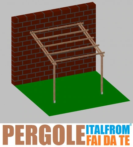 Pergola da Giardino Addossata in Legno di Pino Impregnato - mt 3 X 3 x 2,5h - con Supporti ad Interr