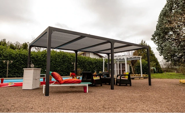 CODICE ARTICOLO: ITALFROM_10355 PERGOLA IN ALLUMINIO BIOCLIMATICA - cm 360X598cm - ITALFROMGIARD106 La pergola autoportante, è costituitAo da una resistente struttura in alluminio, 156 lamelle, vere lamelle frangisole, regolabili a piacimento, protette da verniciatura a polvere, tutto ad azionamento manuale. Le sue 156 doghe, divise in 4 parti, offrono la possibilità di ribaltarsi a 90 °, permettendo di aprire chiudere, in un solo gesto, le 2 parti su un lato alla volta per regolare l'intensità della luce desiderata. In posizione di chiusura delle lamelle, il tetto offre una perfetta protezione in caso di pioggia, guidandolo nelle grondaie laterali, per completare il suo percorso all'interno dei 4 montanti laterali. Autoportante, offre un'ampia copertura di 6 m, per una profondità di 3,60 m, permette la creazione di un ampio salone estivo nel cuore del suo giardino, fornisce uno spazio accogliente e protetto in tutte le stagioni all'interno della vostra terrazza. Accostato al bovindo di un soggiorno, permette, chiudendo le sue feritoie, di ridurre l'impatto del sole, spalancandolo, di creare una ventilazione naturale, evitando l'effetto serra durante la stagione calda, e aprendole completamente, per mantenere la luce all'interno della stanza, soprattutto in inverno. Con la sua struttura in alluminio al 100%, hai un materiale resistente e leggero che non arrugginisce, perfetto in tutte le stagioni. Tutti i pezzi di giunzione, progettati in acciaio epossidico, garantiscono la rigidità della struttura, pur affermando la resistenza e la longevità dei meccanismi di fronte alle aggressioni esterne. Sviluppato per offrire una semplice installazione, grazie alle sue istruzioni dettagliate e alle parti numerate, avrai un pergolato bioclimatico che permette di giocare con i capricci del sole, di godere di una riposante atmosfera estiva o di pranzare in tutta quétude nonostante una leggera pioggia fine a fine autunnDettagli del prodotto : - Design decisamente moderno e contemporaneo - Progettato per la protezione o l'esposizione al sole - Doghe regolabili, orientabili fino a circa 90 ° di apertura manuale- Controllo preciso dell'apertura delle lamelle e dell'intensità della luce - Regolazione dell'apertura indipendente sui 2 lati del tetto della pergola - Ripiegate, le lamelle proteggono dal sole e dalla pioggia - Struttura in alluminio epossidico - Giunzione in acciaio epossidico e parti del meccanismo - Pali in alluminio lunghi e molto stabili - Finitura di fascia alta - Facile da montare - Resistente al calore e agli agenti atmosfericiCaratteristiche : Struttura : alluminio spessore 1,2 mm, colore grigio antracite Copertura :formata su 2 lati da pannelli interconnessi in alluminio, orientabili semicurvi da 90 mm, orientabili fino a circa 90 ° e spessore 1mm, colore grigio antracite, orientabili , apribili individualmente. Apertura e chiusura delle doghe regolabili con una sola manovellaFornito di : 6 piedi dimensione 10 x 10 cm, spess 1,2 mm, completi di placche di fissaggio a terra da 16 x 16 cm spessore 3 mm ; 2 grondaie lateraliDimensione imballi di consegna : 8 : 11 collo 225x34,5x21,5 cm + 1 da 152x37,5x12 cm + 1 da 225x36x21,5 cm + 2 da 38x44x14 cm + 3 da 147x23x19,5 cmPeso imballi di consegna : 30,5 + 14,2 + 33,5 + 2 x 28,4 + 3 x 33 kg = 234 kg totali Manuale di installazione fornito all’interno della confezione Consigli d’uso : Uso domestico, per ricoverare qualsiasi prodotto non pericoloso Suggerimenti per la posa in opera : considerando la dimensione della pergola, suggeriamo l’impiego di 4 persone per il montaggio. Installare su soletta in cemento. Operazione da effettuare prima della posa in opera ed in tempo utile per un perfetto consolidamento