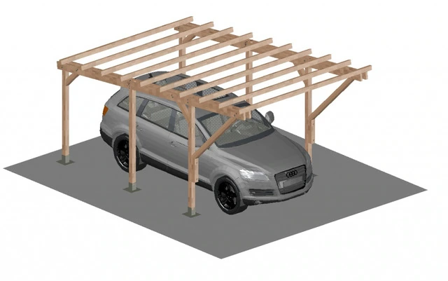 Carport Tettoia a Sbalzo per Auto in Legno di Pino Impregnato - mt 5 X 3 - con Supporti a Tassellare