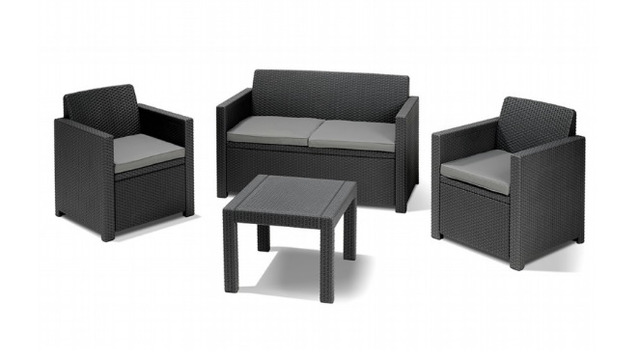 CODICE ARTICOLO: ITALFROM_11072 SALOTTO DA GIARDINO SET AMABALA LOUNGE 2 POLTRONE DIVANO E TAVOLINO Set da terrazzo per interno/esterno ideale anche per giardini e spazi di intrattenimento. Elementi d'arredo eleganti e sofisticati, con trama piatta in stile rattan resistente e duratura.Dimensioni poltrone 65x62x77HDimensioni divano 128,5x62x77HDimensioni tavolino 59x59x43HDimensioni imballo 124x80x59H • Set dal design classico ed elegante • Seduta spaziosa, confortevole e dotata di cuscino • Realizzato con materiale resistente e durevole, che riproduce la finitura intrecciata del rattan Il set è disponibile nella colorazione:Grafite / Cuscini Cool GreyCappuccino / Cuscini Sand