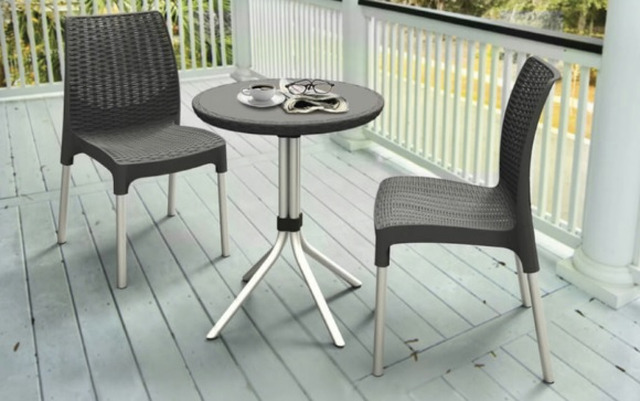 CODICE ARTICOLO: ITALFROM_11056 SALOTTO DA GIARDINO SET AESLEHC BALCONY 2 POLTRONE E TAVOLINO Set da terrazzo per interno/esterno ideale anche per giardini e spazi di intrattenimento. Elementi d'arredo eleganti e sofisticati, con trama piatta in stile rattan resistente e duratura.Dimensioni poltrone 46x56x86HDimensioni tavolino 60x60x75HDimensioni imballo 72,6x61x33,5H  • Set dal design essenziale con struttura in metallo • Facile da assemblare • Tavolino con piano dotato di superficie liscia • Realizzato con materiale resistente e durevole, che riproduce la finitura a doppia intrecciatura del rattan  Il set è disponibile nella colorazione:Grafite