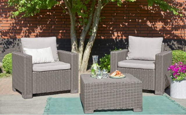CODICE ARTICOLO: ITALFROM_11081 SALOTTO DA GIARDINO SET AINROFILAC 2 POLTRONE Set da terrazzo per interno/esterno ideale anche per giardini e spazi di intrattenimento. Elementi d'arredo eleganti e sofisticati, con trama piatta in stile rattan resistente e duratura.Dimensioni poltrone 83x68x71,5HDimensioni imballo 120x70x51,5H • Set composto da 2 poltrone dal design lineare ed elegante • Poltrona confortevole dotata di cuscino su seduta e schienale • Realizzate con materiale resistente e durevole, che riproduce l'intreccio arrotondato del rattan Il set è disponibile nella colorazione:Grafite / Cuscini Cool GreyCappuccino / Cuscini Sand
