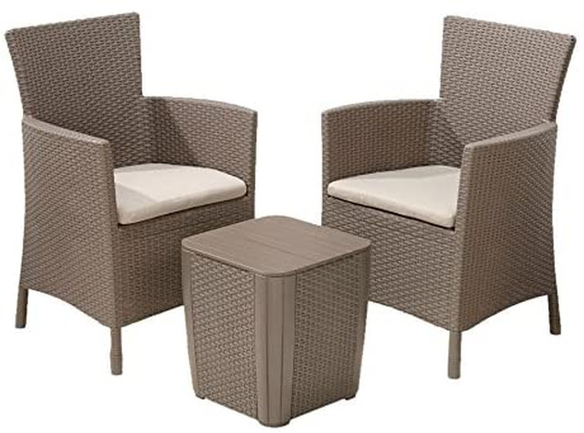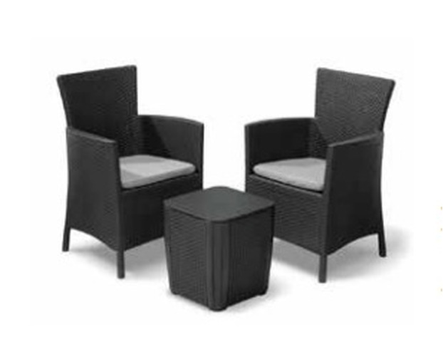 CODICE ARTICOLO: ITALFROM_11049 SALOTTO DA GIARDINO SET BALCONY AWOI 2 POLTRONE E TAVOLINO CONTENITORE Set da terrazzo per interno/esterno ideale anche per giardini e spazi di intrattenimento. Elementi d'arredo eleganti e sofisticati, con trama piatta in stile rattan resistente e duratura.Dimensioni poltrone 62x60x89HDimensioni tavolino contenitore 39x39x42HDimensioni imballo 80x60x50H                 • Seduta confortevole dotata di cuscino • Tavolino con angoli e coperchio realizzati con finitura che riproduce l'effetto del legno spazzolato • Realizzato con materiale resistente e durevole, che riproduce la finitura intrecciata del rattan Il set è disponibile nelle colorazioni:Grafite...