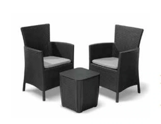 CODICE ARTICOLO: ITALFROM_11049 SALOTTO DA GIARDINO SET BALCONY AWOI 2 POLTRONE E TAVOLINO CONTENITORE Set da terrazzo per interno/esterno ideale anche per giardini e spazi di intrattenimento. Elementi d'arredo eleganti e sofisticati, con trama piatta in stile rattan resistente e duratura.Dimensioni poltrone 62x60x89HDimensioni tavolino contenitore 39x39x42HDimensioni imballo 80x60x50H                 • Seduta confortevole dotata di cuscino • Tavolino con angoli e coperchio realizzati con finitura che riproduce l'effetto del legno spazzolato • Realizzato con materiale resistente e durevole, che riproduce la finitura intrecciata del rattan Il set è disponibile nelle colorazioni:Grafite/ Cuscni Cool GreyCappuccino / Cuscini Sand
