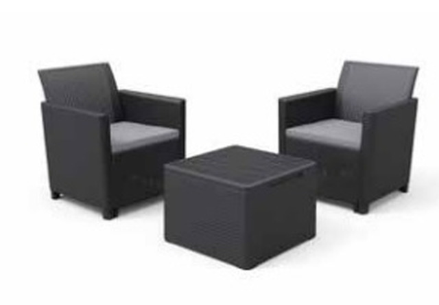 SALOTTO DA GIARDINO IN RESINA SET ERIALC BALCONY 2 POLTRONE E TAVOLINO CONTENITORE