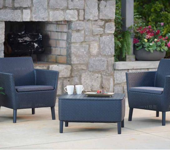SALOTTO DA GIARDINO IN RESINA SET OMELAS BALCONY 2 POLTRONE E TAVOLINO CONTENITORE