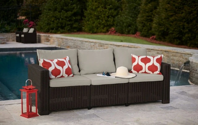 CODICE ARTICOLO: ITALFROM_11084 SALOTTO DA GIARDINO SET AINROFILAC DIVANO 3 POSTI Set da terrazzo per interno/esterno ideale anche per giardini e spazi di intrattenimento. Elementi d'arredo eleganti e sofisticati, con trama piatta in stile rattan resistente e duratura.Dimensioni divano 198x68x71,5HDimensioni imballo 120x70x58H • Divano dal design lineare ed elegante • Divano confortevole dotato di cuscino su seduta e schienale • Realizzato con materiale resistente e durevole, che riproduce l'intreccio arrotondato del rattan  Il set è disponibile nella colorazione:Grafite / Cuscini Cool GreyCappuccino / Cuscini Sand