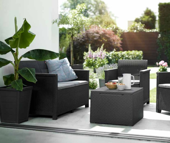 CODICE ARTICOLO: ITALFROM_11060 SALOTTO DA GIARDINO SET AMME LOUNGE 2 POLTRONE DIVANO E TAVOLINO Set da terrazzo per interno/esterno ideale anche per giardini e spazi di intrattenimento. Elementi d'arredo eleganti e sofisticati, con trama piatta in stile rattan resistente e duratura.Dimensioni poltrone 65x63x74HDimensioni divano 113x65x74HDimensioni tavolino 60x55x39HDimensioni imballo 120x64x60H • Set dal design lineare ed elegante • Seduta confortevole dotata di cuscino • Ampio tavolino contenitore• Realizzato con materiale resistente e durevole, che riproduce la finitura intrecciata del rattan Il set è disponibile nella colorazione:Grafite/Cuscini Coool Grey