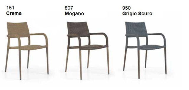 CODICE ARTICOLO: ITALFROM_8142 Set 4 Sedie Modello ALR-3 con Gambe, Seduta e Braccioli in Alluminio Intrecciata con Wicker  CARATTERISTICHE - Telaio in Alluminio ø 30 mm spessore 1,5 mm;- Seduta e Rivestimento in Wicker; - Tappi terminali in polipropilene elasto; - Prodotto in Europa; - Peso 3,70 kg; - Impilabili- 2 anni di garanzia;DIMENSIONI (in cm)COLORIESEMPI