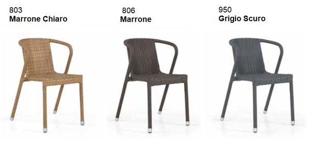 CODICE ARTICOLO: ITALFROM_8143 Set 4 Sedie Modello ALR-4 con Gambe, Seduta e Braccioli in Alluminio Intrecciata con Wicker CARATTERISTICHE - Telaio in Alluminio ø 28 mm spessore 1,5 mm;- Seduta e Rivestimento in Wicker; - Tappi terminali in polipropilene elasto; - Prodotto in Europa; - Peso 4,09 kg; - Impilabili- 2 anni di garanzia;DIMENSIONI (in cm)COLORIESEMPI