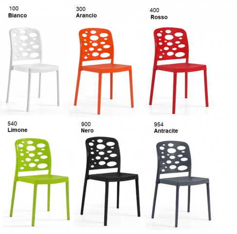 CODICE ARTICOLO: ITALFROM_8128 Set 4 Sedie Modello Bubble con Gambe in Legno e Seduta in Polipropilene CARATTERISTICHE - Polipropilene; - Resistente ai raggi UV e all'umidità; - Resistenza del colore 7/8 (massimo 8); - Gambe in alluminio rivestite in polipropilene nello stesso colore della seduta; - Gambe fissate alla seduta mediante contrazione plastica- Tappi terminali in polipropilene elasto; - Prodotto in Europa; - Peso 3,09 kg; - Impilabili- 2 anni di garanzia;DIMENSIONI (in cm)COLORIESEMPI