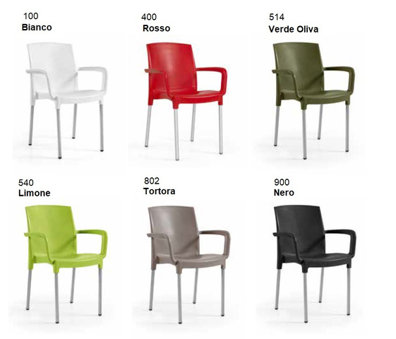 CODICE ARTICOLO: ITALFROM_8116 Set 4 Sedie Modello Claire con Braccioli in Polipropilene CARATTERISTICHE - Polipropilene in fibra di vetro; - Resistente ai raggi UV e all'umidità; - Resistenza del colore 7/8 (massimo 8); - Gambe in tubo di Alluminio anodizzato ø 25 mm spessore 14 mm; - Gambe fissate alla seduta mediante contrazione plastica- Tappi terminali in polipropilene elasto; - Prodotto in Europa; - Peso 3,32 kg; - Impilabili- 2 anni di garanzia;DIMENSIONI (in cm)COLORIESEMPI