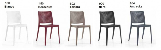 CODICE ARTICOLO: ITALFROM_8104 Set 4 Sedie Modello June in Polipropilene CARATTERISTICHE - Polipropilene in fibra di vetro; - Resistente ai raggi UV e all'umidità; - Resistenza del colore 7/8 (massimo 8); - Gambe compatte iniettate a gas; - Tappi terminali in polipropilene elasto; - Prodotto in Europa; - Peso 2,92 kg; - Impilabili- 2 anni di garanzia;DIMENSIONICOLORIESEMPI