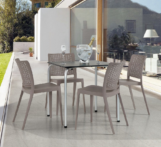CODICE ARTICOLO: ITALFROM_8112 Set 4 Sedie Modello Sophie in Polipropilene CARATTERISTICHE - Polipropilene in fibra di vetro; - Resistente ai raggi UV e all'umidità; - Resistenza del colore 7/8 (massimo 8); - Gambe in tubo di Alluminio anodizzato ø 25 mm spessore 14 mm; - Gambe fissate alla seduta mediante contrazione plastica- Tappi terminali in polipropile...
