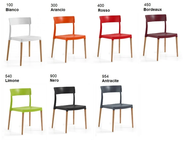 CODICE ARTICOLO: ITALFROM_8132 Set 4 Sedie Modello Lilly con Gambe in Legno di Faggio e Seduta in Polipropilene CARATTERISTICHE - Polipropilene; - Resistente ai raggi UV e all'umidità; - Resistenza del colore 7/8 (massimo 8); - Gambe in legno di faggio; - Gambe fissate alla seduta mediante contrazione plastica- Tappi terminali in polipropilene elasto; - Prodotto in Europa; - Peso 3,14 kg; - Impilabili- 2 anni di garanzia;DIMENSIONI (in cm)COLORIESEMPI