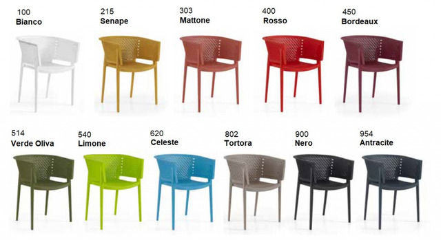 CODICE ARTICOLO: ITALFROM_8100 Set 4 Sedie Modello Oxy con Braccioli in Polipropilene CARATTERISTICHE - Polipropilene in fibra di vetro; - Resistente ai raggi UV e all'umidità; - Resistenza del colore 7/8 (massimo 8); - Gambe compatte iniettate a gas; - Tappi terminali in polipropilene elasto; - Prodotto in Europa; - Peso 5,04 kg; - Impilabili- 2 anni di garanzia;DIMENSIONICOLORIESEMPI