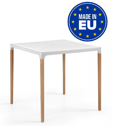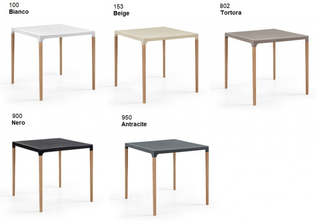 Tavolo Ibiza con Gambe in Legno Design da Giardino Cucina Bar Ristorante con Top in Polipropilene Va