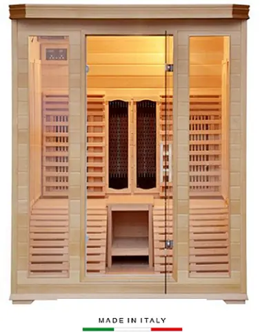 CODICE ARTICOLO: ITALFROM_10757 La sauna infrarossi è una delle tipologie più moderne e pratiche di saune, che si differenzia in molte caratteristiche dalla classica e tradizionale sauna finlandese, modificando, e delle volte migliorando, anche i benefici sul nostro organismo,creando un ambiente “secco”.Questa tipologia di sauna ha un approccio multifunzionale, semplice e piacevole per la nostra salute e che grazie ai raggi infrarossi riscalda il corpo, senza riscaldare eccessivamente l’aria e senza generare un’umidità eccessiva, garantendo un vero momento di relax eliminando tutte le tossine e lo stress della vita quotidiana.Dimensioni: 150 x 150 x 190 cm - 2 sdraio in legno - 8 piastre irradianti in carbonio - 2 irradiatori infrarossi in ceramica- Radio, usb, mp3 - Ionizzatore per profumoterapia- Cromoterapia 7 colori- Temperatura: da 18 a 65 °C - Potenza: 2740 W - Legno: Hemlock