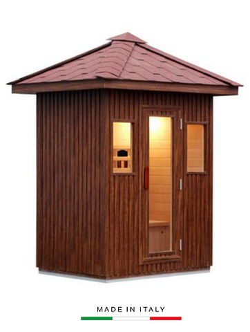 CODICE ARTICOLO: ITALFROM_10790 Sauna ad infrarossi 3 posti da esterno full optional ad infrarossi è studiata per chi vuole godersi la propria sauna all' aperto infatti questa sauna ad infrarossi da esterno è costruita per resistere alle intemperie grazie al trattamento da esterno e il tetto spiovente, può essere posizionata su giardini o terrazze.La sauna ad infrarossi +relax300E è in legno hemlock con rivestimento esterno in WPC (wood plastic composites), il tetto è rivestito con tegole canadesi, pavimento con basamento isolato in alluminio, pavimento interno in legno hemlock.La sauna ad infrarossi +relax300E è dotata di optional quali:  pannello di controllo, illuminazione interna, cromoterapia a 7 ...
