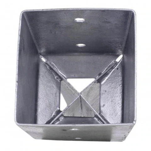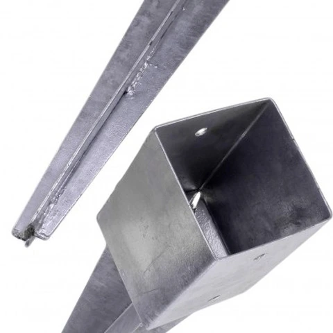 Porta palo in acciaio grezzo con superficie zincata a fuoco da ancorare nel terreno per pali in legno quadri . Evita il contatto del palo con il terreno , garantendo maggiore durabilità nel tempoDisponibili per dimensioni 71x71 - 91x91 mm Numero di fori Foro Misura A Misura B Misura C Misura D 4 ø 11 mm 71 mm 71 mm 150 mm 750 mm MontaggioFissaggio sicuro mediante avvitamento laterale.