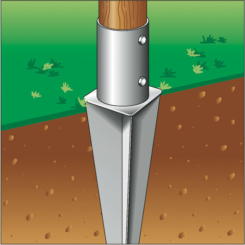 CODICE ARTICOLO: ITALFROM_5080 Porta palo in ferro zincato da ancorare nel terreno per pali in legno tondi . Evita il contatto del palo con il terreno , garantendo maggiore durabilità nel tempoDisponibili per diametri 80 - 100 - 120 mmDimensioni mm:a: 81 / 101 / 121 b: 150 /150 / 145c: 600 / 600 / 750MontaggioFissaggio sicuro mediante avvitamento laterale.