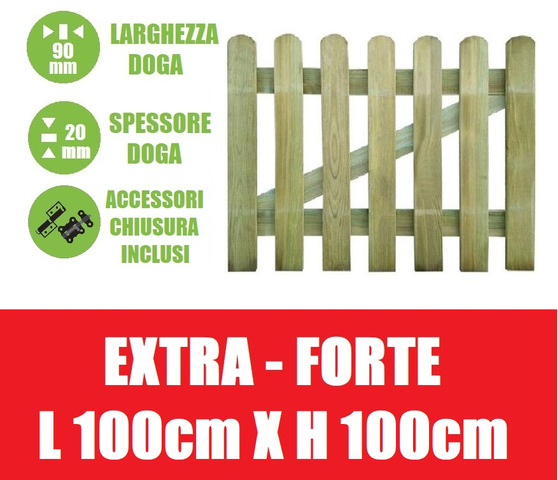 CODICE ARTICOLO: ITALFROM_6267 Cancelletto in legno di pino impregnato in autoclave per esterni e giardini realizzato con legno trattato in autoclave 4° classe.Il cancelletto lungo 100 cm è formato di una serie di doghe piallate 9x2 cm con l’estremità superiore arrotondata, fissate alle traverse con chiodi zincati. Il kit comprende: - cerniere, - gancio di arresto.I nostri pordotti in legno pino torniti , provengono dal Nord Europa, dove la crescita più lenta delle piante a causa del clima rigido, rende la fibra del legno più resistente e adatta alle lavorazioni. Tutti i prodotti in legno di pino vengono impregnati in autoclave con una soluzione salina conservante e successivamente portati ad una ...