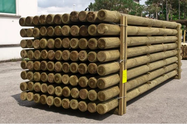Pali in Legno di Pino Nordico Senza Punta Torniti Impregnati- Trattati Classe III - Diametro: 10cm - H200cm