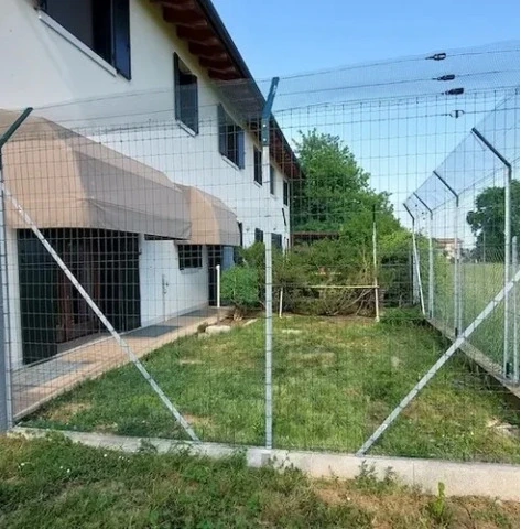 Prolunga esterna T35: caratteristiche e montaggio La Prolunga esterna T35 è adatta per allungare il palo con sezione a “T” da 35 mm con inclinazione verso l’esterno della recinzione, ideale per proteggersi dalle intrusioni esterne di animali. Progettata per i pali in ferro a “T” da 35 mm si adatta anche ai pali con sezione da 30 mm. La prolunga ha un’inclinazione di 45°, con una lunghezza dello sbalzo di 50 cm. Installazione La prolunga viene installata inserendo la parte verticale nel paletto a “T” per un’altezza di 15 cm, nei 2 fori devono essere inserite le 2 viti M8x20 con dadi flangiati M8 (in dotazione con la fornitura) e stretti a battuta contro il palo per il suo bloccaggio. Il palo pertanto non deve avere fori aggiuntivi. I paletti con sezione a “T” vengono normalmente installati con la parte piatta della “T” verso l’esterno della recinzione, la prolunga esterna in questo caso è corretta per aumentare la lunghezza del palo con inclinazione verso l’esterno. Se il paletto a “T” è stato installato in posizione contraria, ossia con la parte piatta della “T” verso l’interno della recinzione, per prolungare la rete con inclinazione verso l’esterno bisognerà utilizzare la prolunga interna Nella prolunga esterna T35 sono presenti 3 fori diametro 9 mm per l’inserimento del filo di tensionamento su tre altezze, con un interasse tra i fori di 20 cm. La prolunga esterna T35 è realizzata in acciaio spessore 2,5 mm, verniciato a forno con polvere epossidica, colore verde RAL 6005.