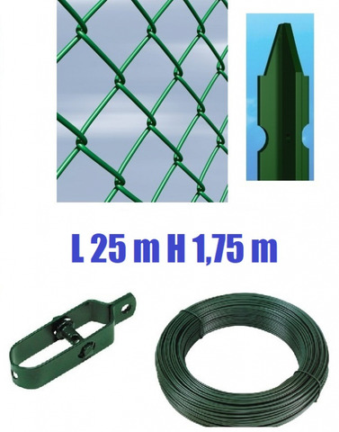 CODICE ARTICOLO: ITALFROM_6702 CONSEGNA 24/48 ORE LAVORATIVE - La composizione va a formare una recinzione di 25 mt lineare con paletti impiantati nel Cemento a 25cm di prof. posizionati circa ogni 2,75mt(10 paletti), con una matassa da 100mt di fili di tensione, 6 tendifilo e una matassa di 100 mt per legature e accorgimenti vari. L' altezza della recinzione è di h 175 cm. Di seguito i prodotti che compongono la recinzione: (N° 1 PZ) Cod. 2174 ROTOLO 25mt RETE METALLICA ZINCATA PLASTIFICATA 'MAGLIA SCIOLTA'-MAGLIA:mm50X50 -DIAMETRO FILO:mm2,4 - ALTEZZA RETE:175 cm------ rete metallica a semplice torsione, conosciuta sul mercato anche con il nome di 'Maglia sciolta' data la sua realizzazione ad intreccio e non elettrosaldata. Realizzata con maglia mm 50x50 , in filo zincato a caldo e plastificato per estrusione con un forte strato di PVC color verde con diametro esterno del filo 2,4 mm. Caratteristica primaria è l’elevata flessibilità in fase di posa in opera, infatti l’impiego è particolarmente adatto per recintare aree caratterizzate da superfici irregolari. (N° 10 PZ) Cod. 2442 PALETTO RECINZIONI A 'T' IN FERRO PLASTIFICATO VERDE - ALTEZZA 200 cm - PER SOSTEGNO DI RETI METALLICHE--- - Palo in ferro avente sezione a 'T' mm 30x30x3 - plastificato colore verde completo di foratura per passaggio fili di tensione e punta superiore. Adatto per il posizionamento di recinzione sia su terreno che su muretto.Trattamento di base del palo: Sabbiatura, degrassaggio, lavaggio, asciugatura, plastificazione, polimerizzazione a 200°Peso Kg 2,9(N° 1 PZ) Cod. 2195 FILO DI LEGATURA PLASTIFICATO VERDE - DIAMETRO 2mm - PER RECINZIONI IN RETE METALLICA - MATASSA DA 100 mt ----Filo di legatura plastificato diametro 1,10 mm interno e 2,00 mm esterno colore verdefilo estremamente malleabile adatto alle legature della recinzione per una posa in opera perfetta.Il filo di legatura può avere molteplici utilizzi in più campi d'impiego. (N° 1 PZ) Cod. 2198 FILO DI TENSIONE PLASTIFICATO VERDE - DIAMETRO 3,2mm - PER RECINZIONI IN RETE METALLICA - MATASSA DA 100 mt----Filo tensione zincato e plastificato diametro 2,4 mm interno e 3,2 mm esterno, colore verde fornito in matasse. Si tratta di un filo rigido ed acciaioso adatto al tensionamento orizzontale con lo scopo di sorreggere ed irrobustire la recinzione per una posa in opera a regola d'arte.(N° 6 PZ) Cod. 2197 TENDIFILO PLASTIFICATO VERDE PER RECINZIONI IN RETE METALLICA ---- Tenditore/tendifilo a cricchetto per filo da tensione.Si utilizza fissado un capo del filo nel foro esistente e l'altro capo viene inserito nel perno che ruotando mette in trazione il filo senza possibilità di ritorno. Il filo di tensione se non è tirato adeguatamente non ha senso di esistere ed è di fondamentale importanza per una buona riuscita della posa in opera.