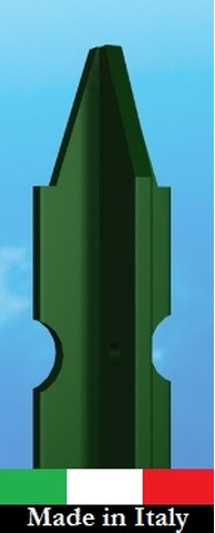 CODICE ARTICOLO: ITALFROM_2180 CONSEGNA 24/48 ORE LAVORATIVE - Palo in ferro Made in italy avente sezione a 'T' mm 30x30x3 - plastificato colore verde completo di foratura per passaggio fili di tensione e punta superiore. Adatto per il posizionamento di recinzione sia su terreno che su muretto.Trattamento di base del palo: Sabbiatura, degrassaggio, lavaggio, asciugatura, plastificazione, polimerizzazione a 200° - Peso: 1,95KgPaletto adatto per le seguenti reti: Se posto nel terreno : Rete ideale H 100 cmSe posto nel cemento : Rete ideale H 125 cm