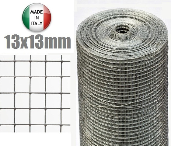 25mt-ROTOLO RETE METALLICA-MINI ZINCATA - MAGLIA:mm13X13 -FILO:mm1,4 -H 100 cm