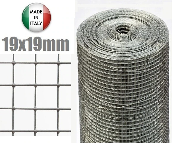 CONSEGNA 24/48 ORE LAVORATIVE - rete metallica in filo zincato elettrosaldato e  zincata Prima della saldatura, a maglie quadre e filo verticale ed orizzontale lineari. E' una rete che si presta a molteplici impieghi ma principalmente a costruzione di voliere, gabbie, grate, piccoli contenitori ed in generale per tutti gli impieghi del settore hobbistico. Questa Rete viene prodotta in rotoli da 25 m.