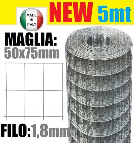 CONSEGNA 24/48 ORE LAVORATIVE -Rete in filo zincato elettrosaldata-Made in Italy- con maglie rettangolari 50X75mm- Filo Standard diametro: 1,80 mm(GARANTITO 100%) L'impiego è rivolto principalmente ai settori edili, industriali, agricolo e zootecnico. La sua caratteristica principale è il fatto che si presenta come rete economica in quanto la zincatura è esclusivamente sul filo e l'elettrosaldatura viene effettuata dopo la zincatura.