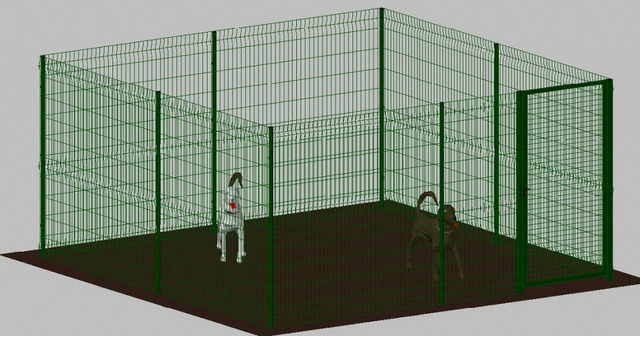 Recinto-Box Modulare per Cani in Ferro Zincato e Verniciato Verde-con Pali a Interrare - cm 400x400x
