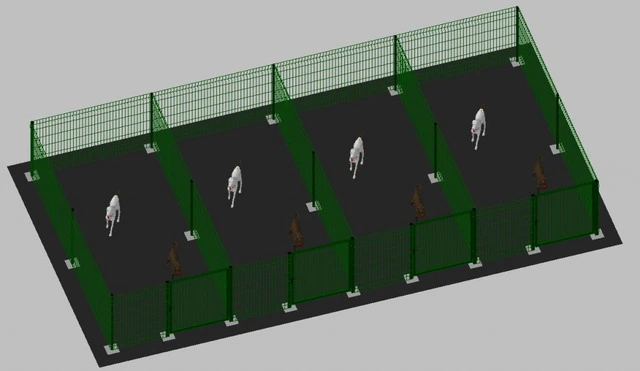 Recinto-Box Modulare per Cani in Ferro Zincato e Verniciato Verde-con Pali a Tassellare - cm 200x400x102h(per 4 box)